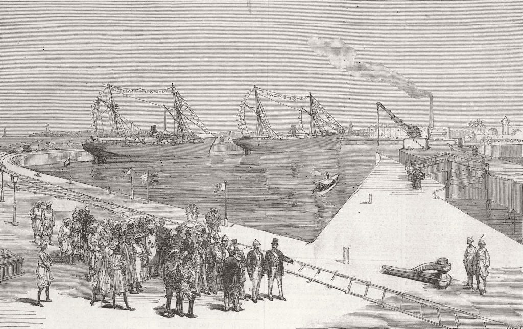 Sassoon Dock, Bombay, 19th century, 1875 old antique vintage print picture. (Antiquemapsandprints.com).