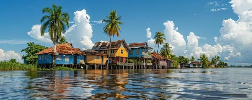 Its population is a mosaic of peoples — Indians, Javanese (from the island of Java), Maroons, Creoles, Indigenous Amerindians, Chinese, and Europeans. The Maroons (from the Spanish cimarrón = “wild, untamed”) were communities of formerly enslaved Africans who escaped Dutch plantations in the 17th and 18th centuries, building independent societies deep in the rainforest.