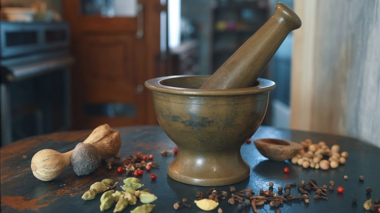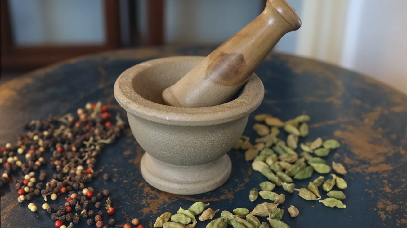 When granny Ruby said hamandasta, she was not naming a tool. She was summoning a sound - the dull percussion of stone against seed. She was invoking kitchens that preceded me: Baghdad, Bombay, Calcutta.