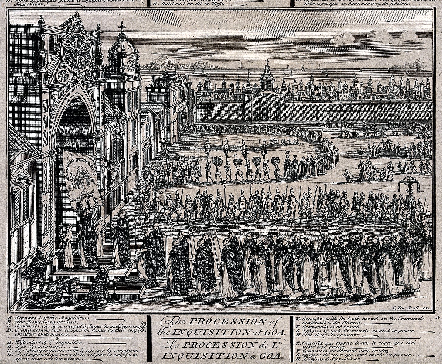 Anonymous engraving, “The Procession of the Inquisition at Goa,” 18th century. Wellcome Collection, London.